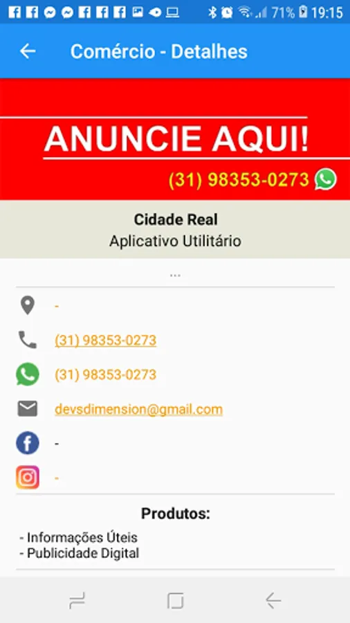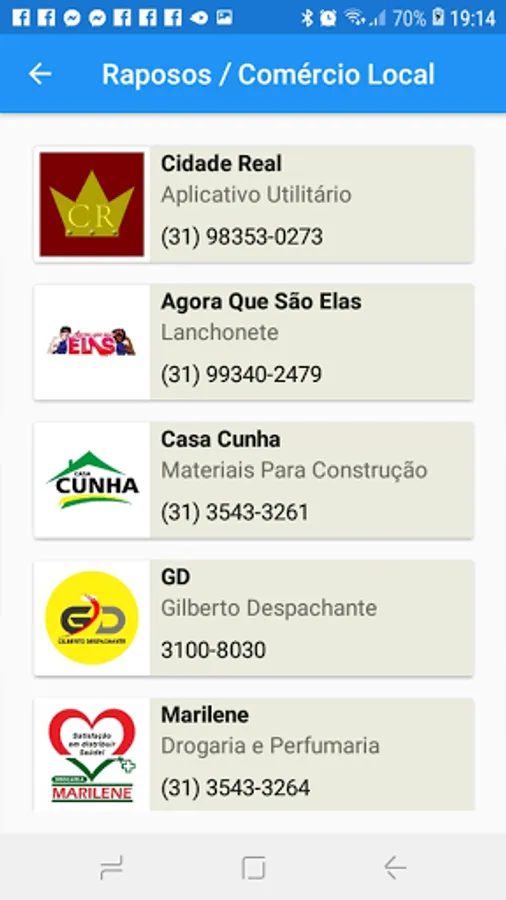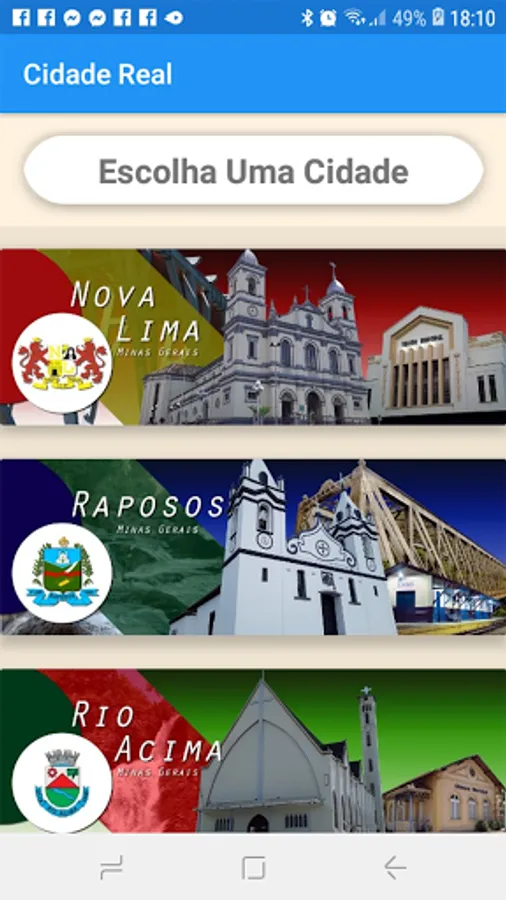 Cidade Real is an application that provides useful information regarding the cities of Nova Lima, Raposos and Rio Acima.
