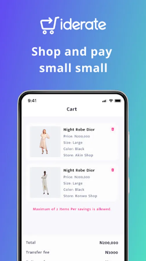 Iderate is an e-commerce application that allows you to shop safely and easily. It allows you to receive your orders from 50% of the purchase price and the rest upon delivery of the item. You will be delivered anywhere in Nigeria and your orders can be returned if they do not meet your expectations.