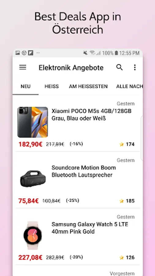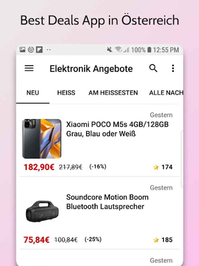 Find the hottest deals in Austria from Electronic4you, Conrad, Saturn, iBOOD, Alza, Gamingoase, Gshopper, Galaxus, Media Markt, Gomibo, Asgoodasnew, Alternate, Bikester, GeekBuying, Reolink, TomTop, Notebookscheaper, Banggood, Olight Store, Mylemon, Cyberport, willhaben, Shpock and many others.