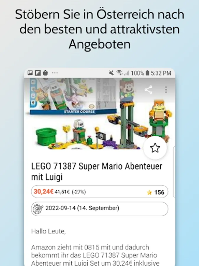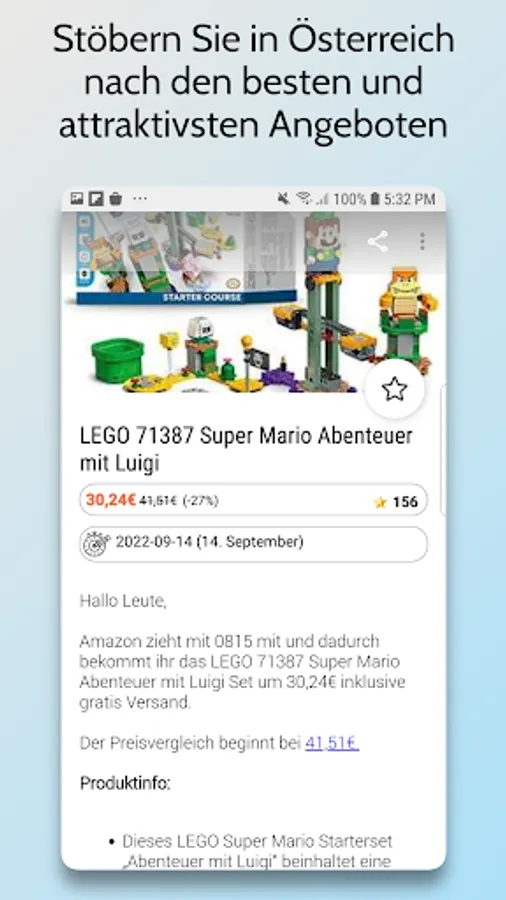 Find the hottest offers in Austria from Müller, Thalia, Zavvi, Weltbild, Smyths Toys, Berg Freund, Geizhals, Ottoversand, Thomann, Thalia, Aktionsfinder, Free, Willhaben and many others.