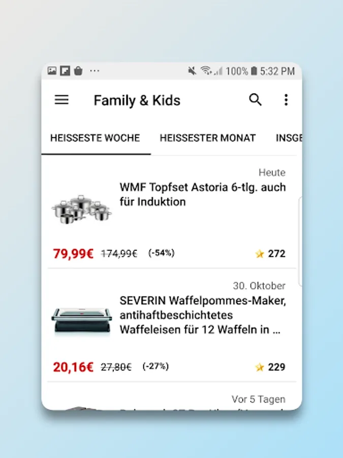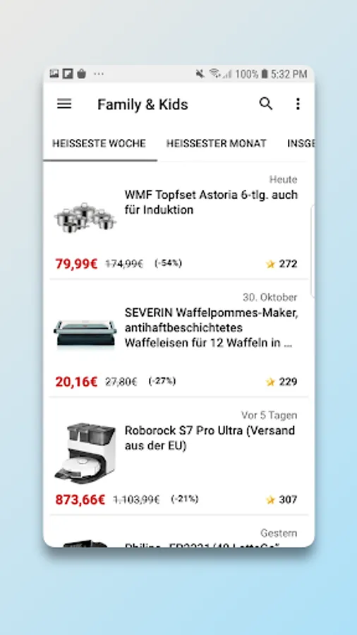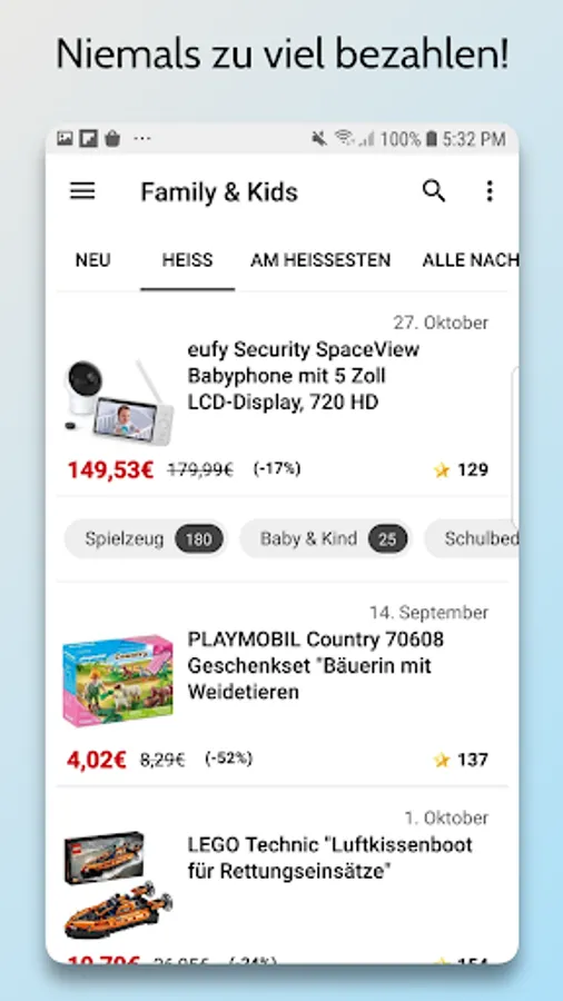 • Use the practical search function and find out at a glance where you can buy your favorite products and brands at particularly low prices