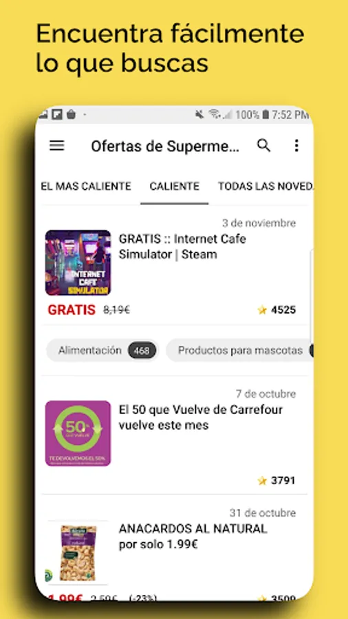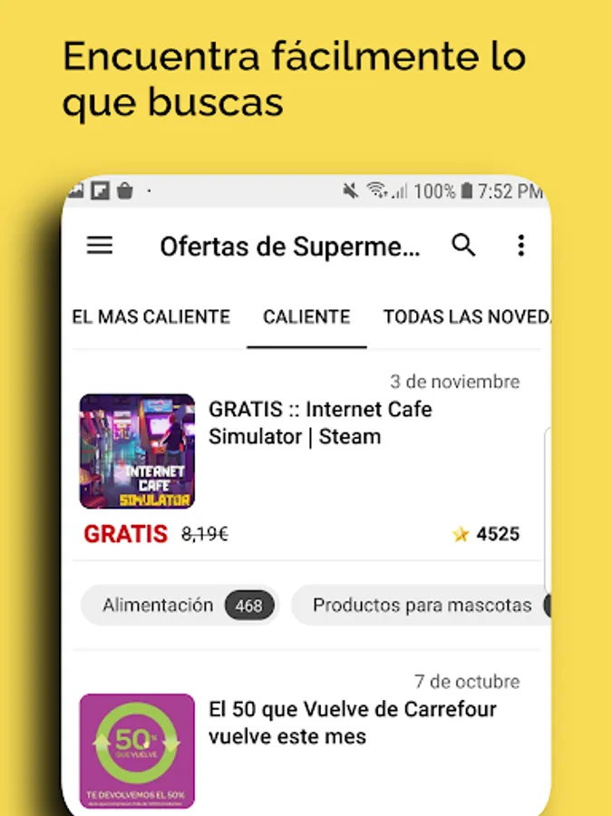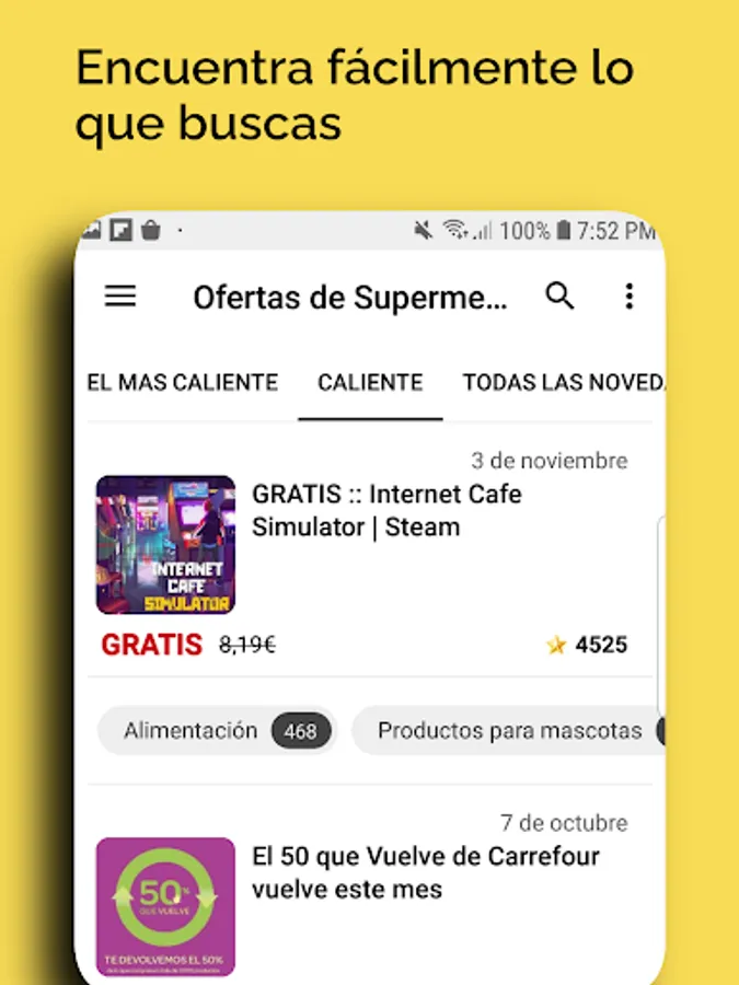 ★ Filter by category the offers or discounts of supermarkets, fashion, DIY, home, electronics, games and apps.