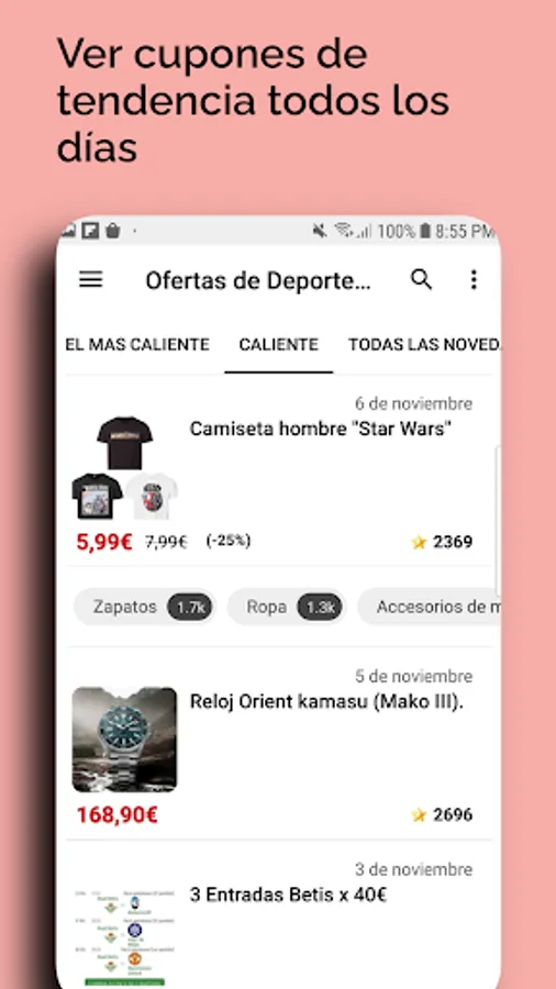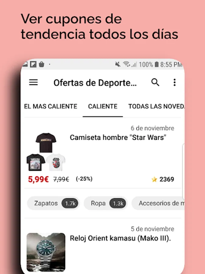 ★ Filter by category the offers or discounts of supermarkets, fashion, DIY, home, electronics, games and apps.