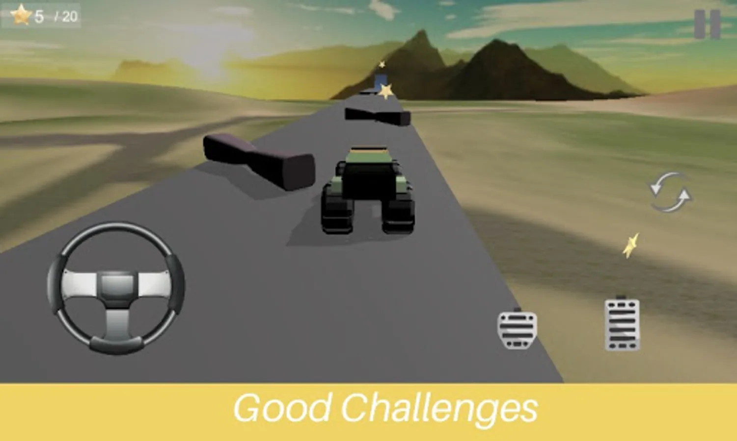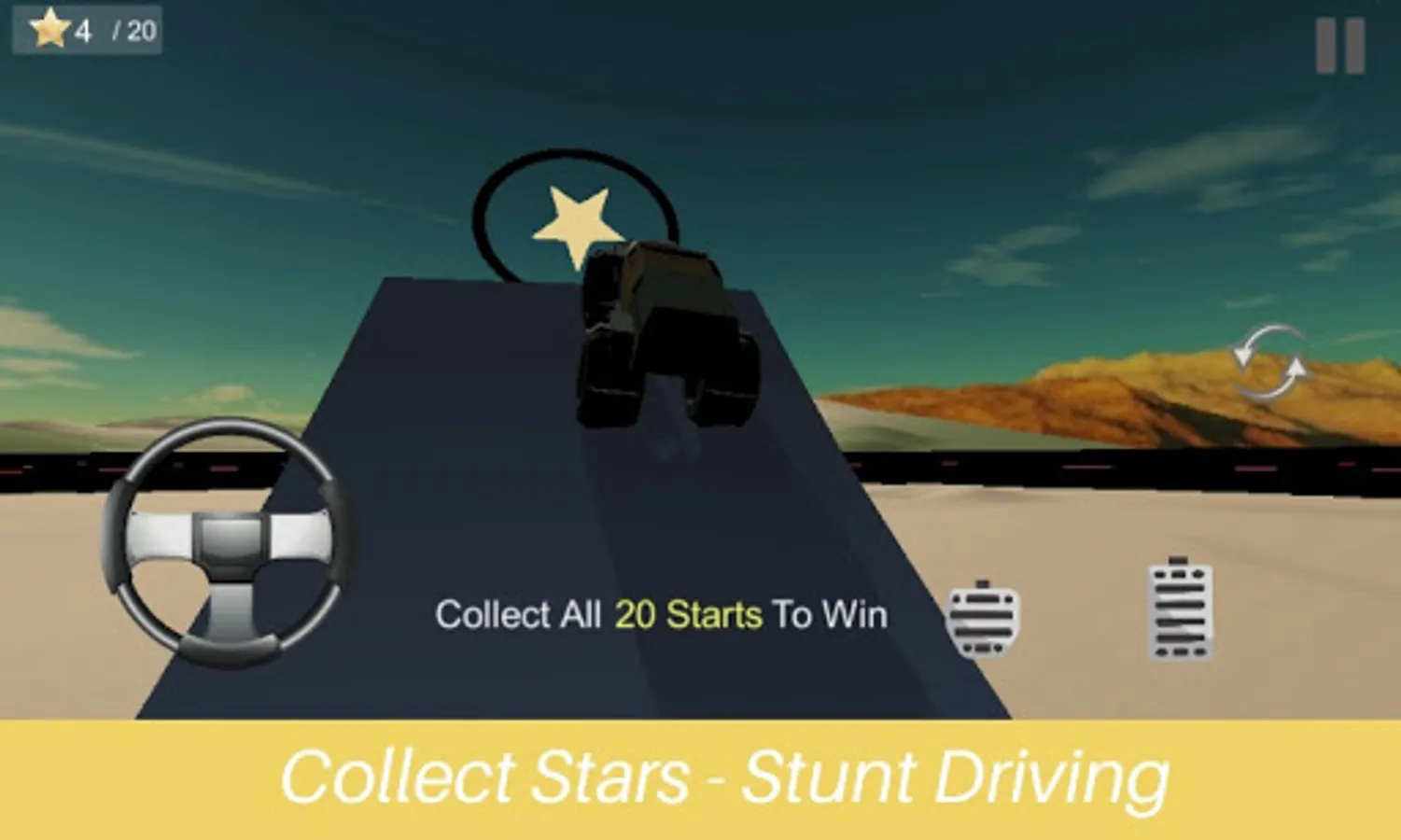 You have to collect all stars by driving and performing stunts, enjoy stunt driving game. Monster truck Stunt physics make this driving game best to play.