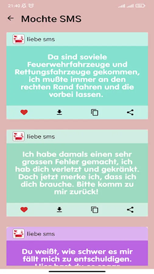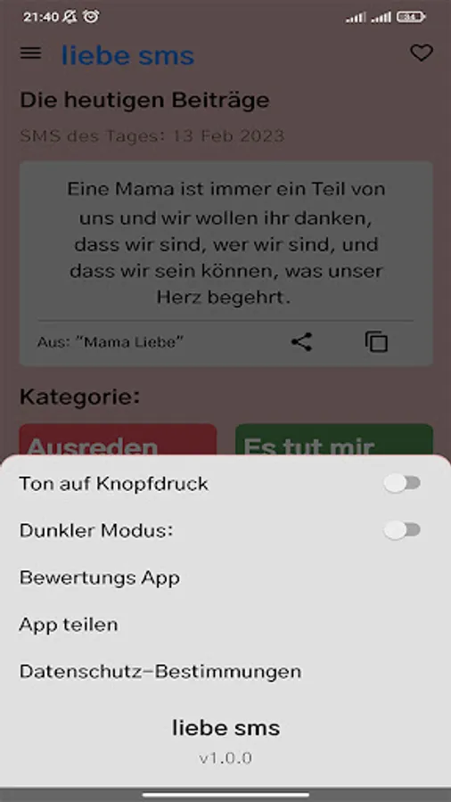 * Any SMS can be shared on Facebook, Twitter, WhatsApp, Google+ or SMS/Mail