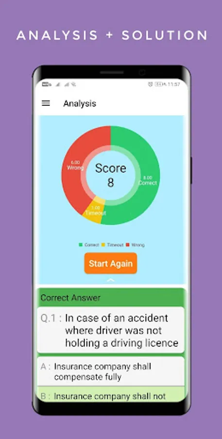 RTO Buddy Generates New Unique Exam Paper-set So that you can practice more and become confident.You get in-depth result after each exam.It Includes your score along with number of correct,wrong answers and time-outed questions.Not only this,You also find solution of each questions so you have better idea out incorrect answers.