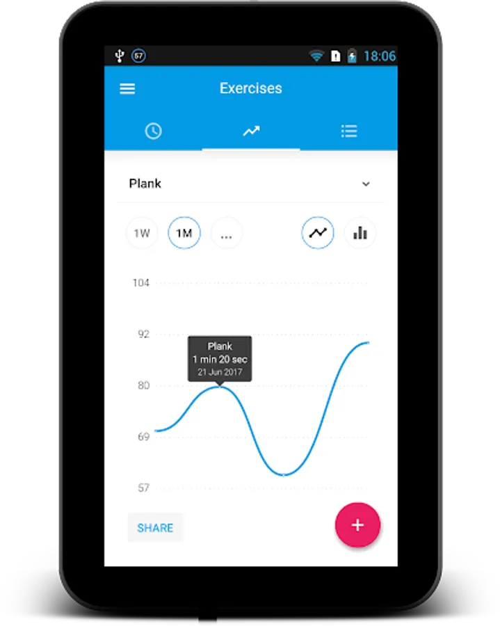Exercise Journal keep all of your workout progress history and provide an excellent visualization of your results on detailed charts. Analyze your past gym progress, share your results with friends on Facebook and Twitter, plan future workout programs and get motivated by browsing your achievements.