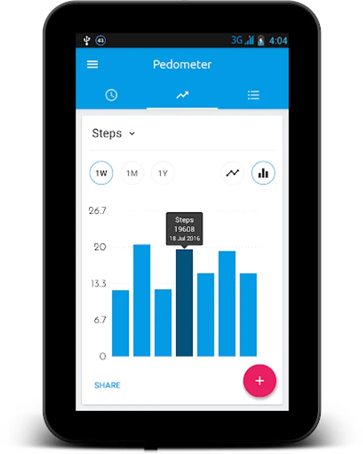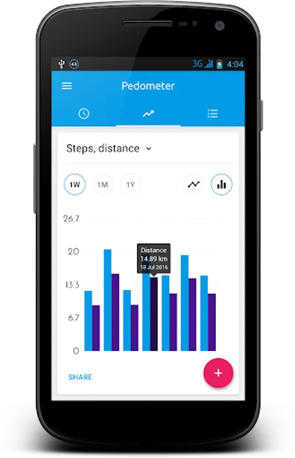 Pedometer lets you keep track of your walking and running activity in a very easy way. It counts your steps and gives you information about distance you walked or run everyday. Detailed daily, weekly, monthly and yearly step and distance charts lets you compare some of your activity period to the previous one. It will motivate you to towards your goals and help you to be physically fit.