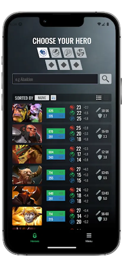 Sorting and Filtering: Utilize convenient tools to sort and filter heroes based on roles, attack types, or difficulty, allowing you to quickly find the perfect hero for you.