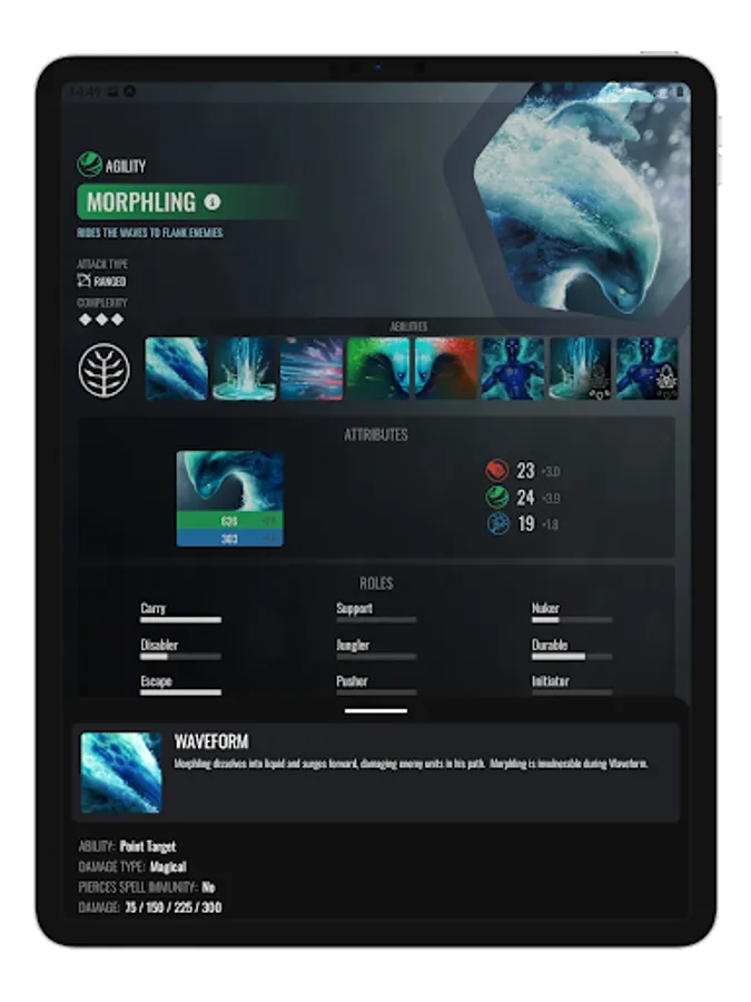 Comprehensive Information: Browse through statistics, skills, base and secret attributes, and read a description for each hero.