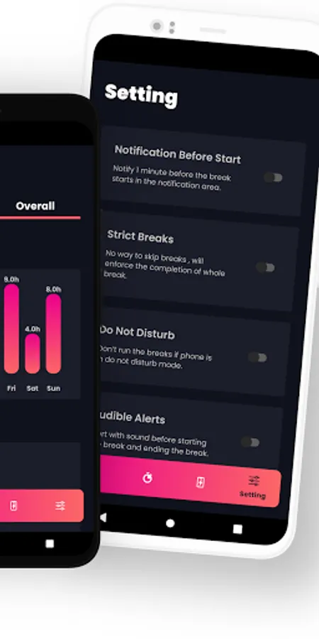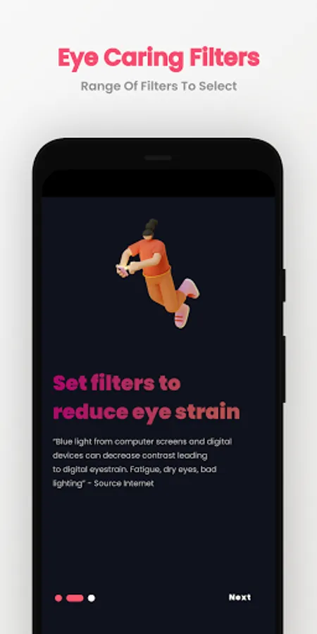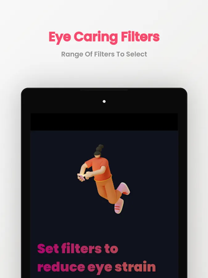 Eyescream is a complete solution for all your eyes-related issues, the app reminds users to take a quick break after long screen usage, all you have to do is install the app and select the break interval time that's it >b>Eyescream will take care of everything. Along with screen breaks Eyescream also provides custom colors screen filters with different opacity and intensity settings to make your screen comfortable for the eyes goodbye to default night mode time for brand new Eyescream screen filters.