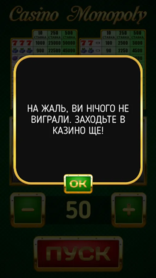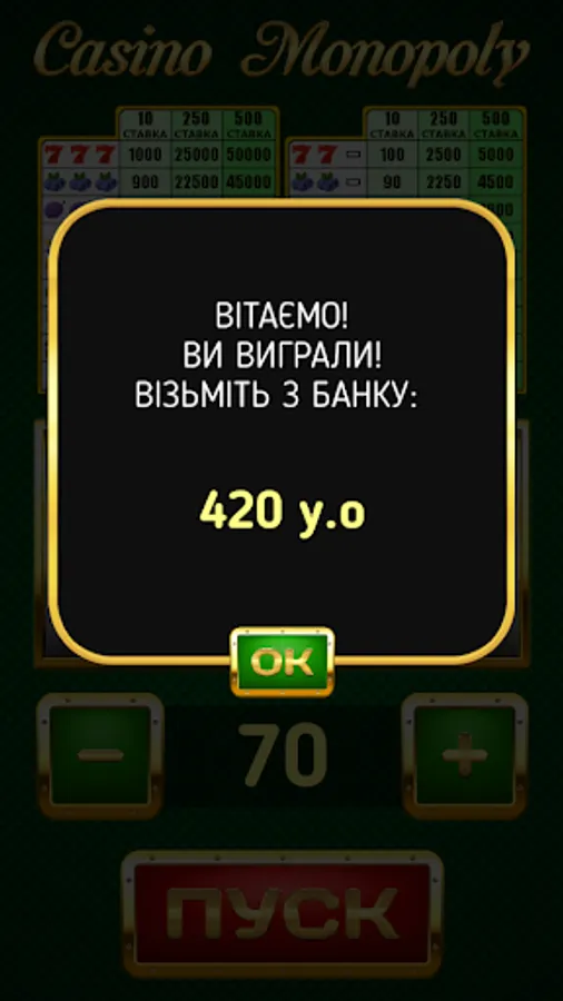 The rules are quite simple. Put a voluntary amount of game money (10 to 500) in the bank, enter it on your smartphone, and press the start button. If a lucky combination occurs on the reels, the application will automatically calculate the amount of winnings that you are entitled to withdraw from the bank.
