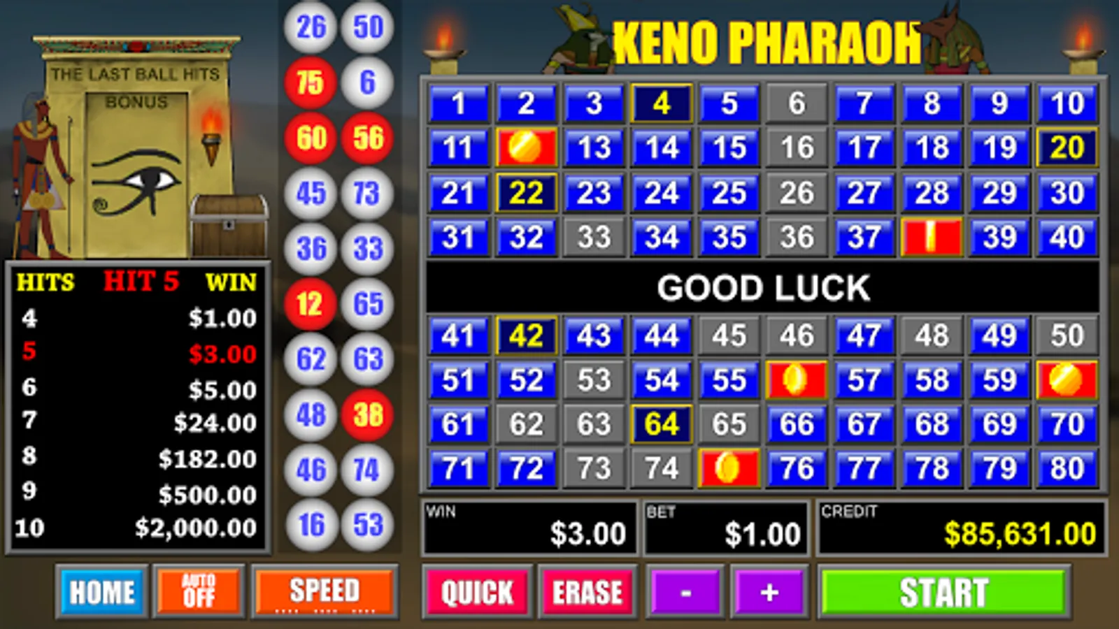 * Auto Pick - quickly pick your numbers.