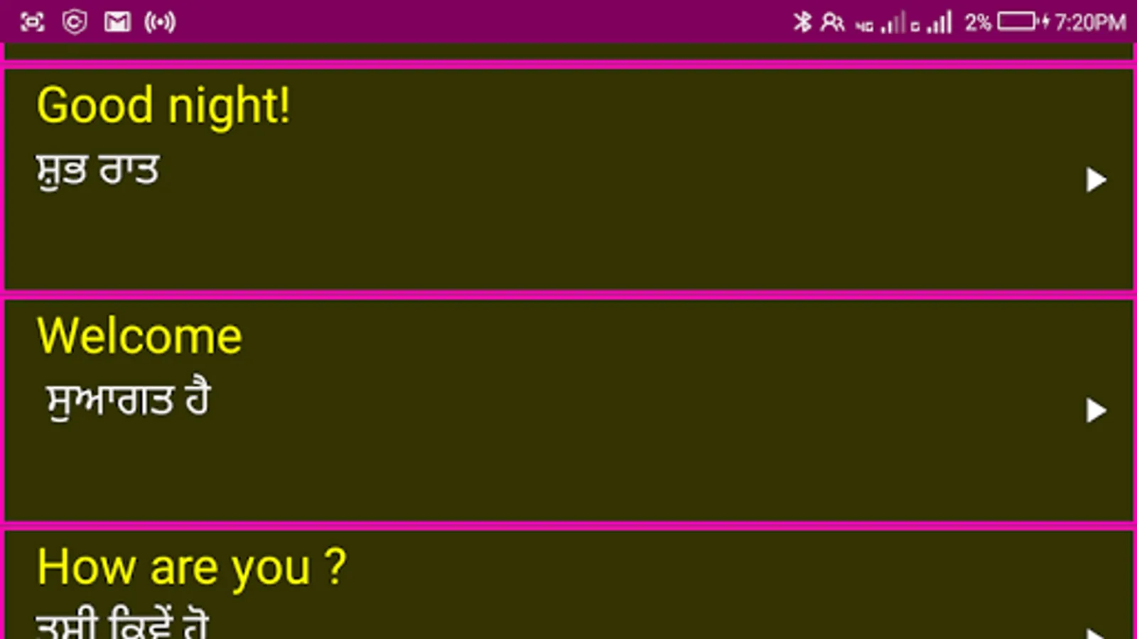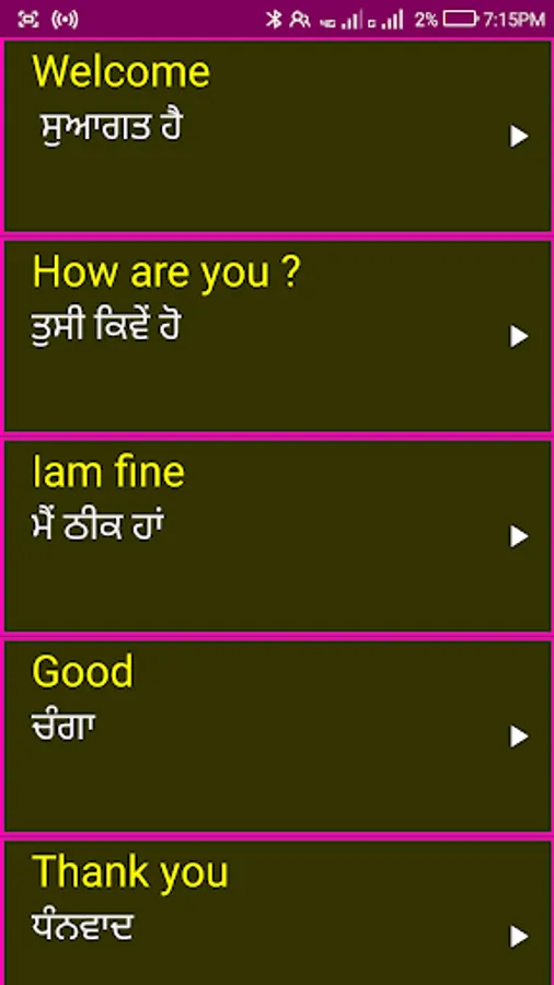 3. All English words and sentences are provided with Punjabi meanings.