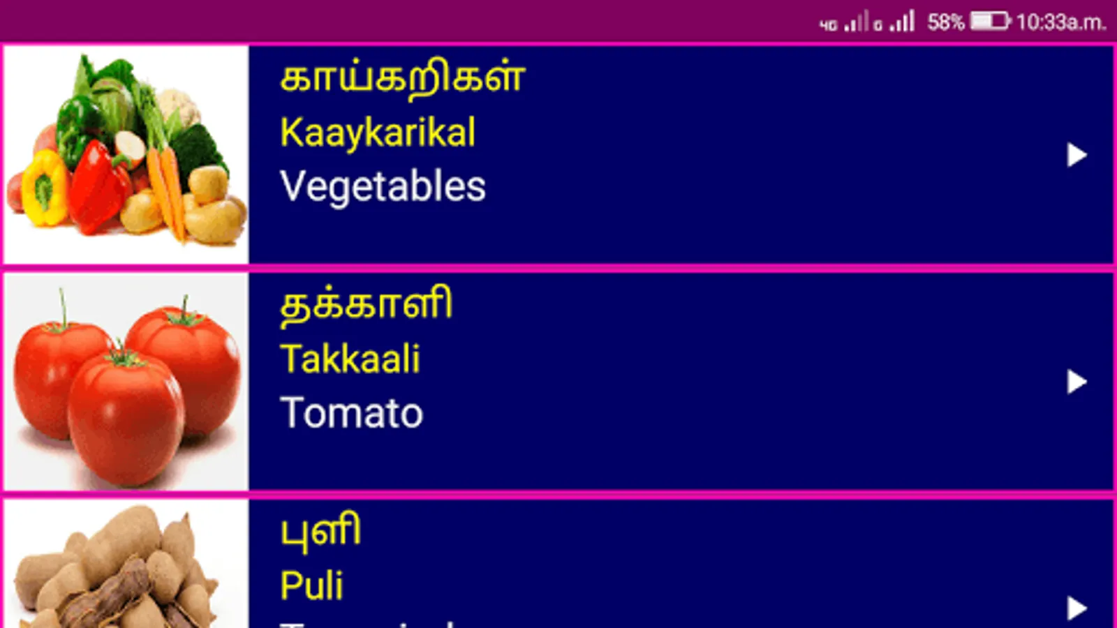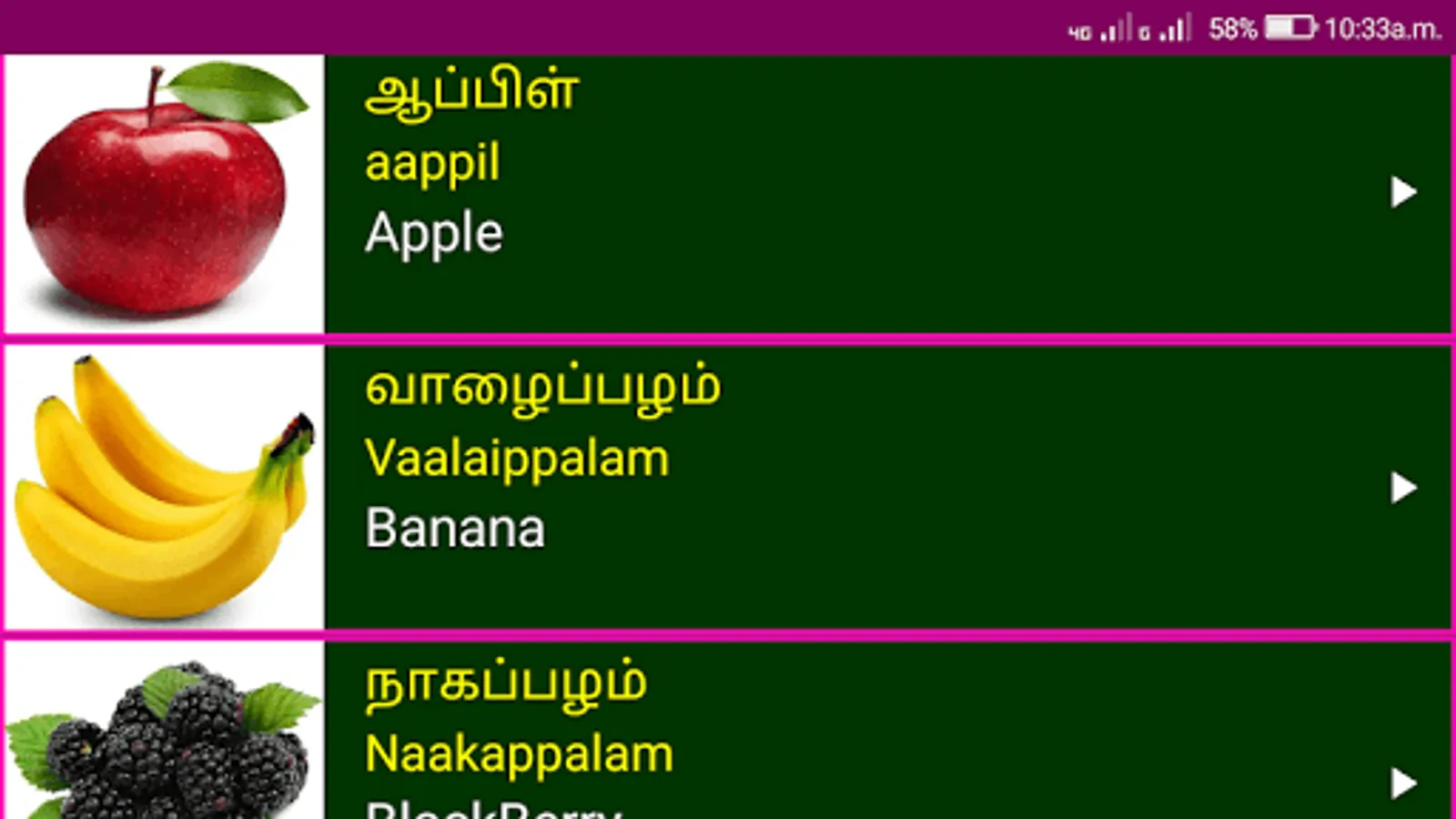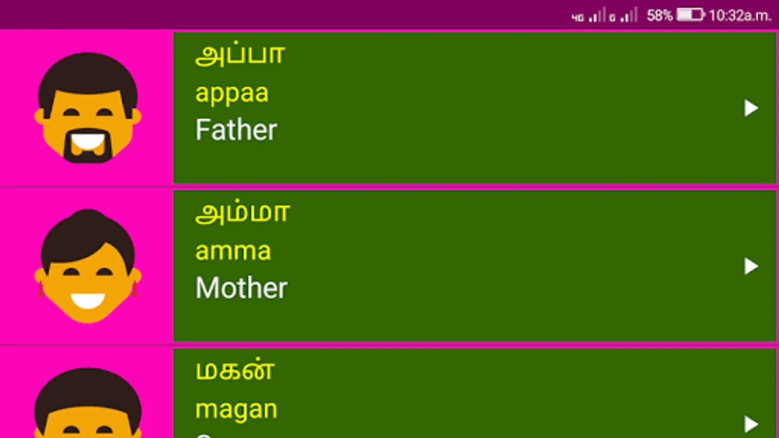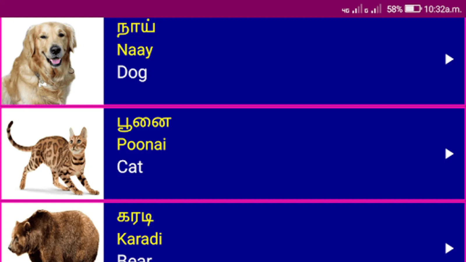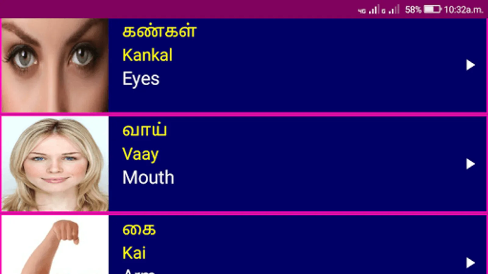 2. Each Tamil word has a clear image πΈπΌοΈ and audio pronunciation π΅π to make Learning Tamil via English Easy.