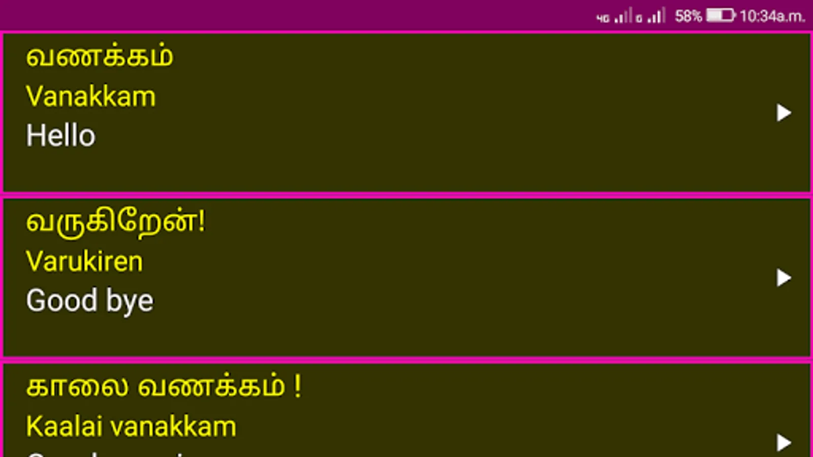 5. The app contains all frequently used Tamil words and sentences to help you understand and talk Tamil in different situations of life. β±οΈβοΈππ
