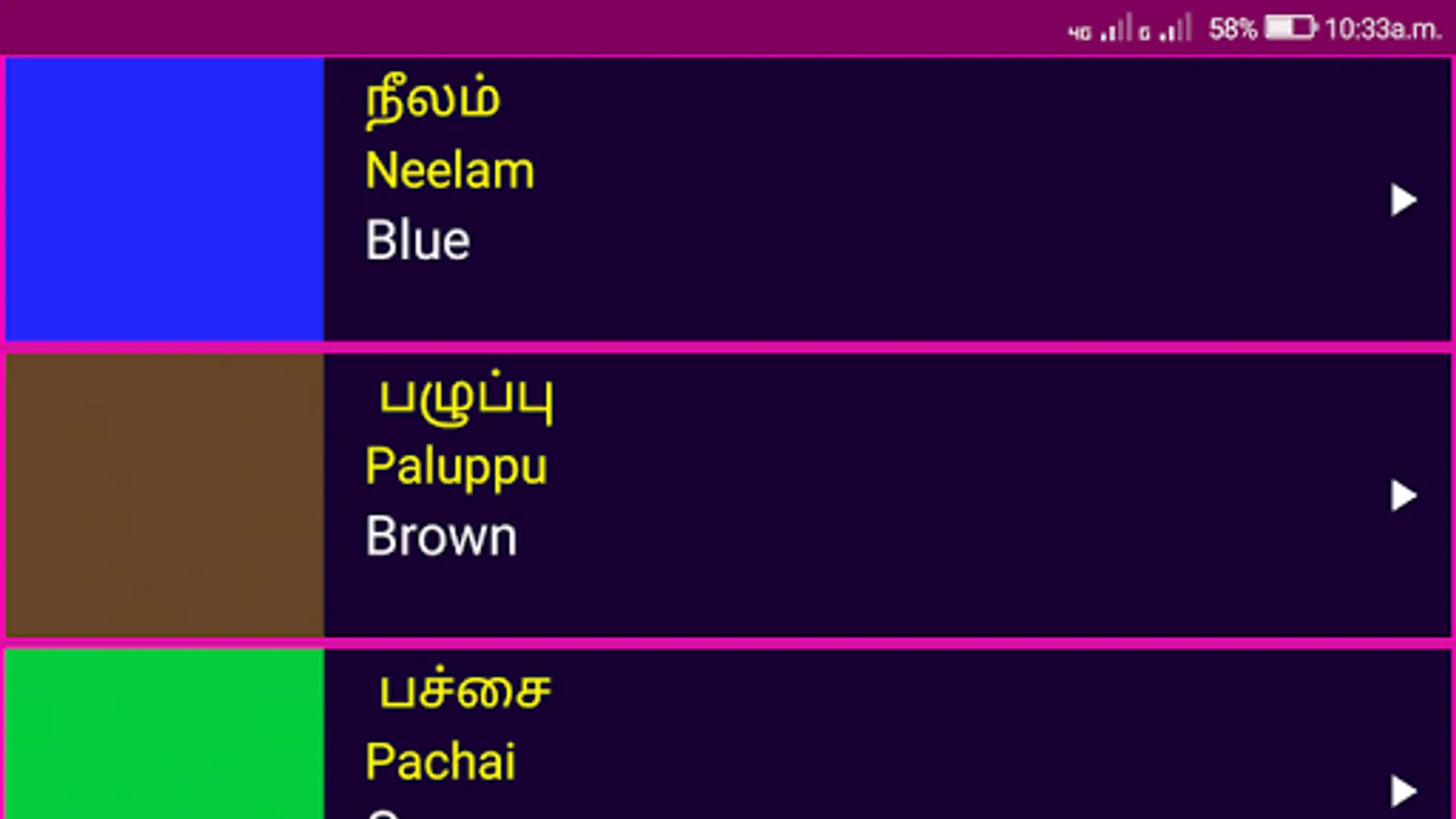4. Learn Spoken Tamil from English app comes with a beautiful app design to make Learning Tamil through English a pleasant experience. π