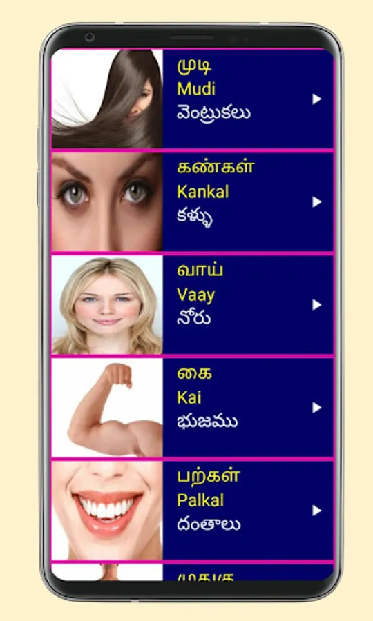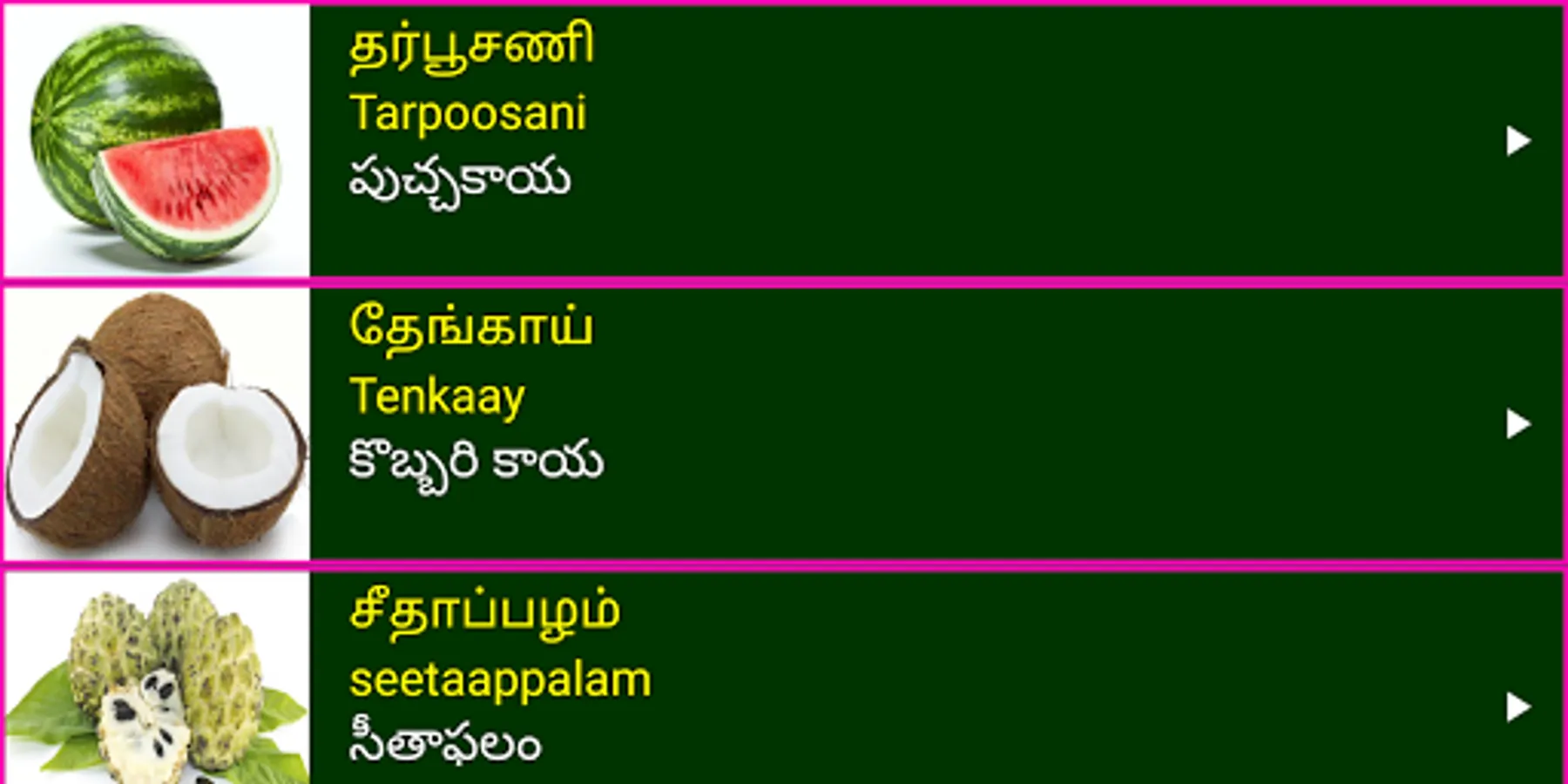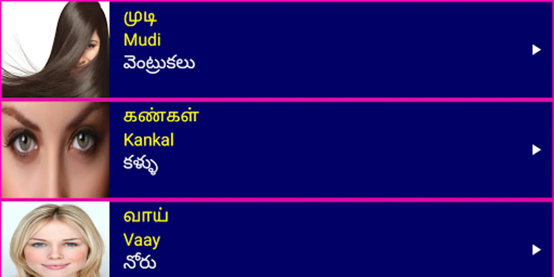 2. Each Tamil word has a clear image πΈπΌοΈ and audio pronunciation π΅π to make Learning Tamil via Telugu Easy.