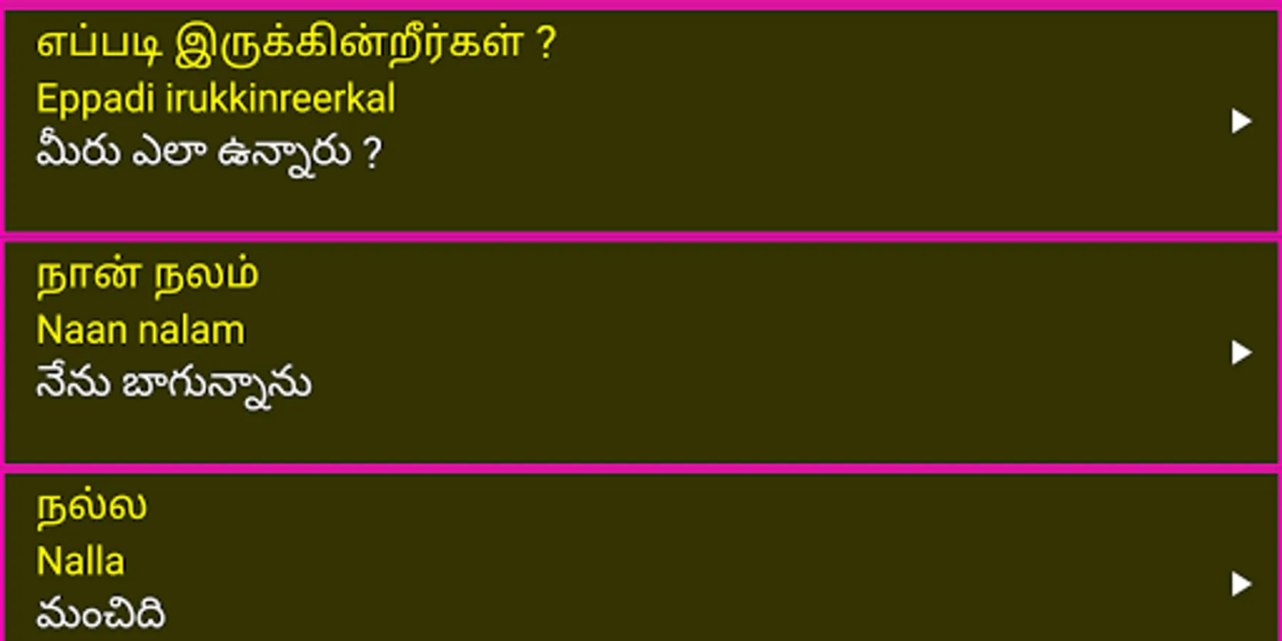 Learn Tamil from Telugu easily. Achieve Your goal of Fluently Talking in Tamil. This app is made to teach you Tamil through Telugu for free. π