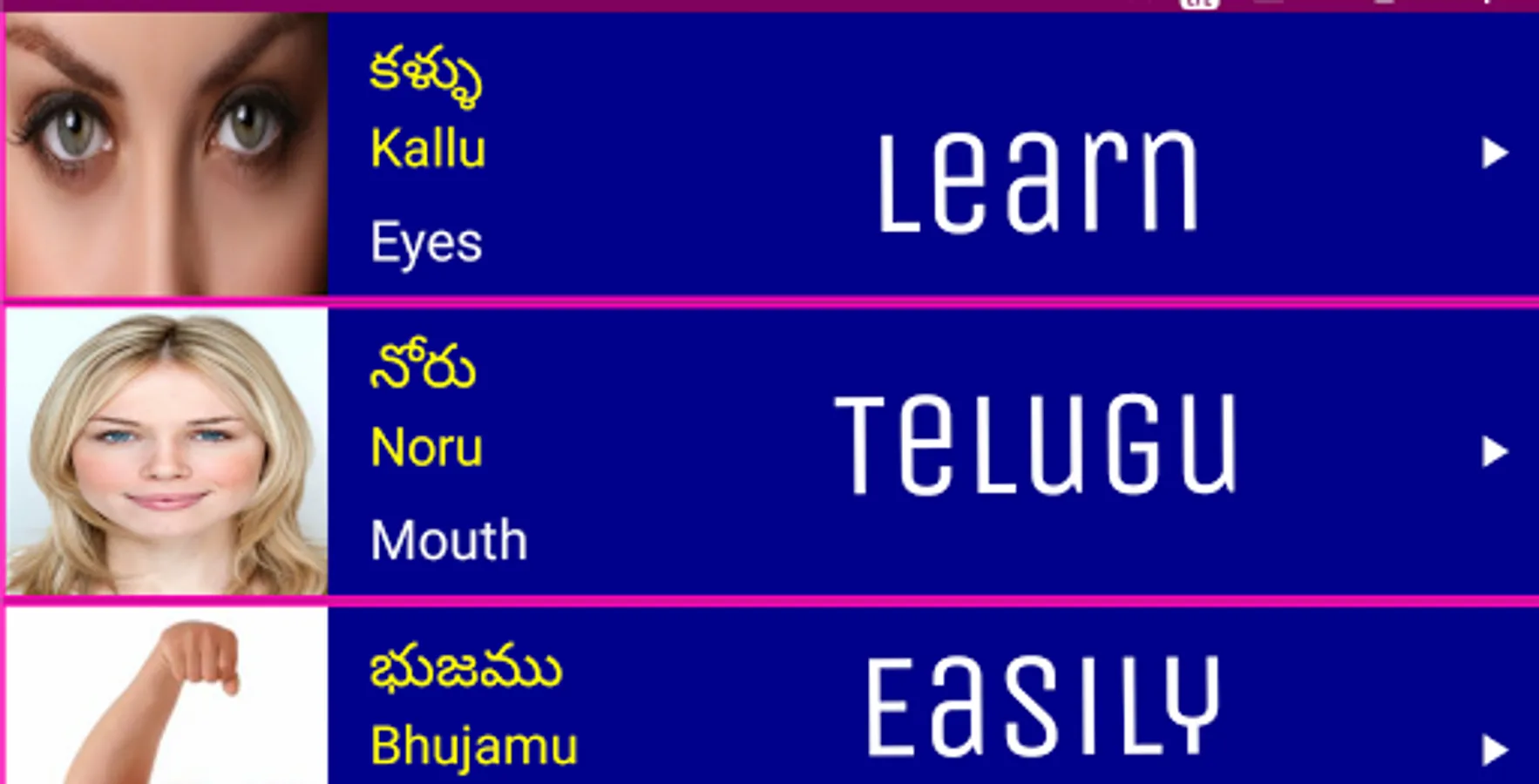 Learn Telugu from English easily. Achieve Your goal of Fluently Talking in Telugu. This app is made to teach you Telugu through English for free. ๐