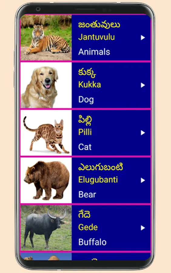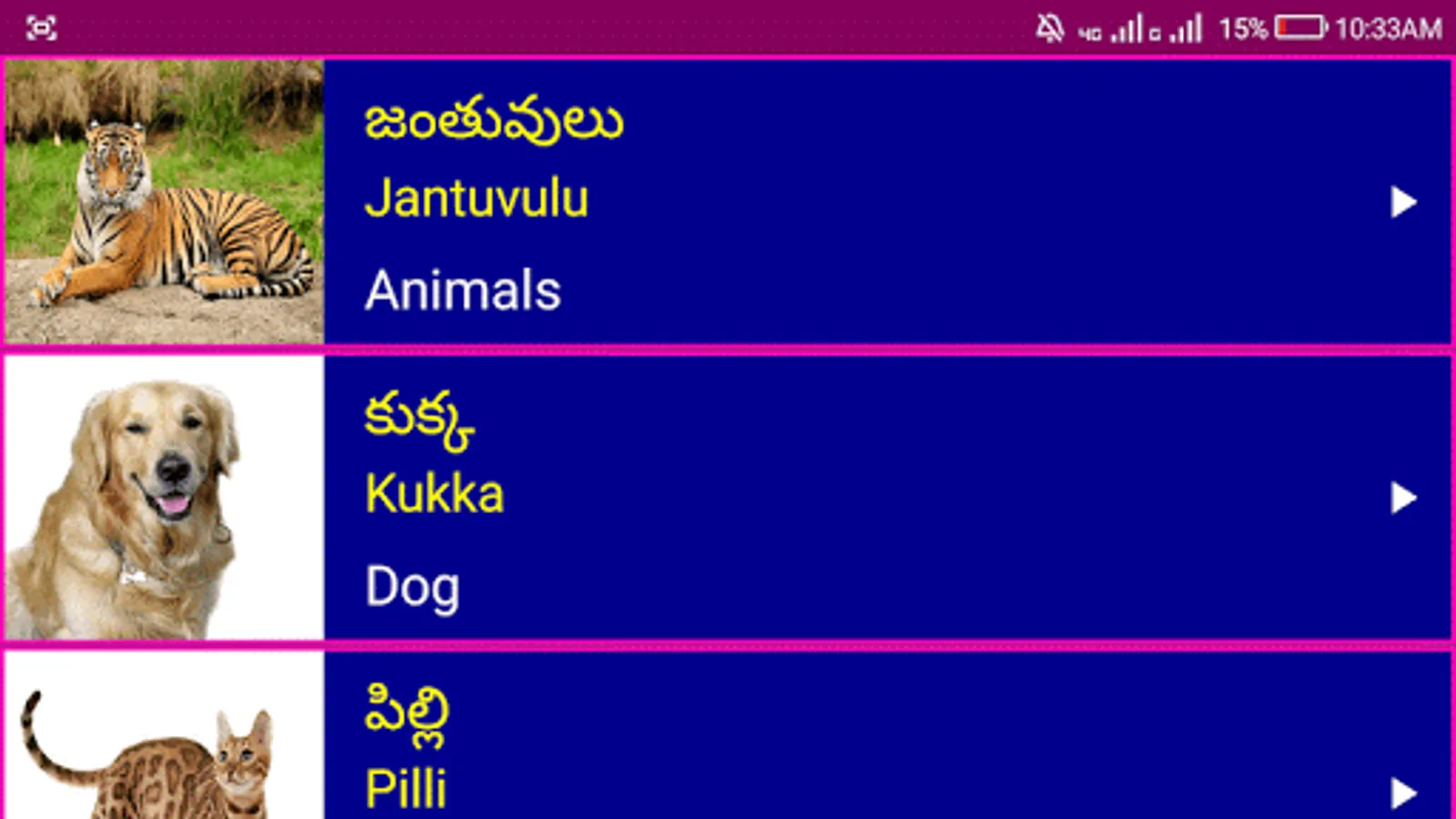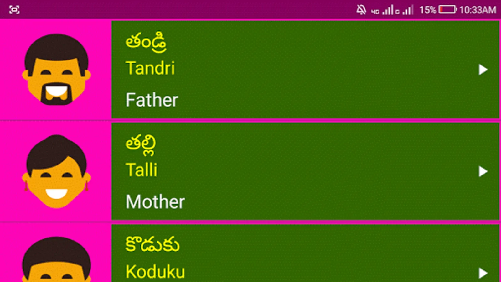 2. Each Telugu word has a clear image ๐ธ๐ผ๏ธ and audio pronunciation ๐ต๐ to make Learning Telugu via English Easy.
