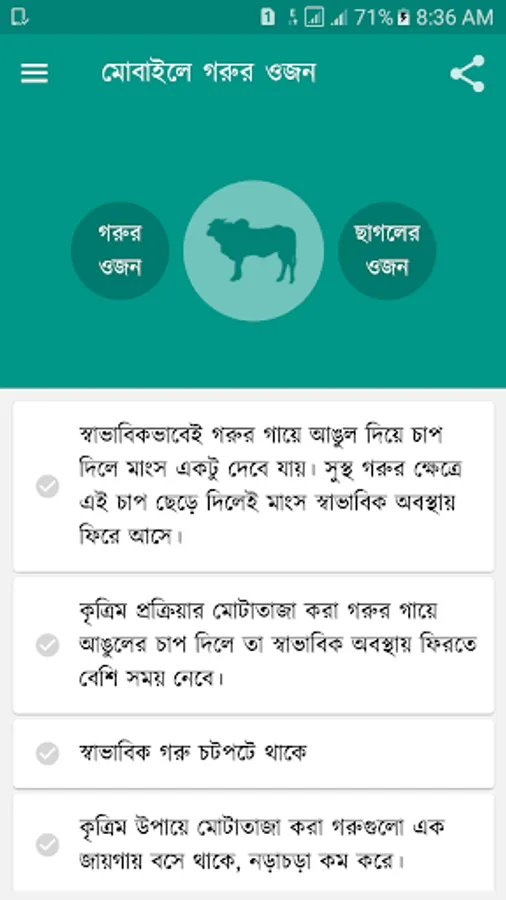 To measure the weight of cattle or goat shopping or to check their health. This app makes it easier to do this. Our mobile app will do a simple job
