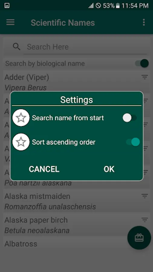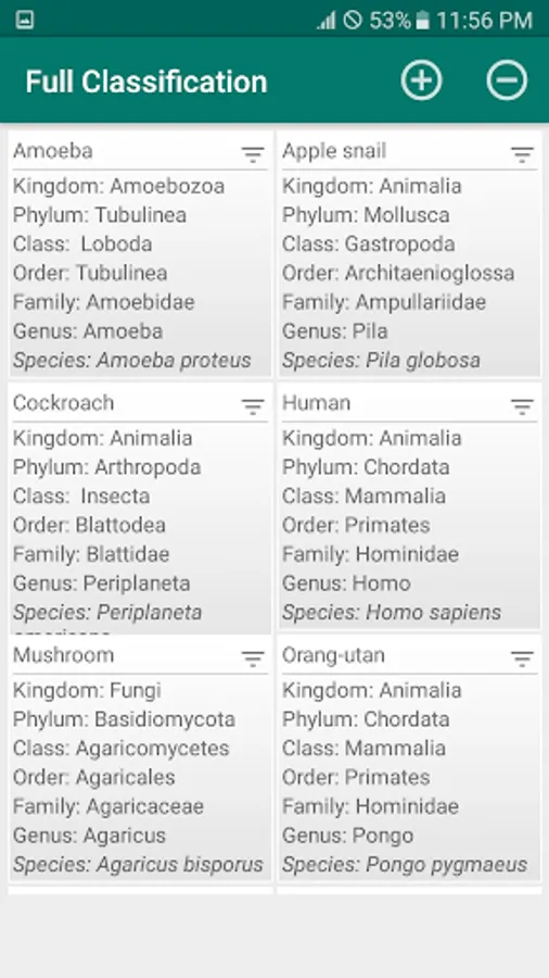 This app provides a large collection of binomial names of organism such as trees, plants, herbs and different types of common and uncommon animals.