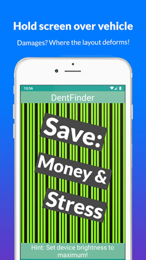 Especially when purchasing a vehicle it is worth investigating the body with DentFinder and introducing the findings into the price negotiation. Dents that have arisen due to hail, for example, often occur without paint damage (scratches or splits), and are therefore difficult to see with the naked eye. Without DentFinder, it might be months before deformations are noticed. Using the DentFinder app you can detect such defects as early as the first inspection. DentFinder is always with you and you don't need to carry any extensive equipment. DentFinder works like a stripe board, but is many times cheaper. DentFinder is an absolutely professional tool at a small price. DentFinder saves more than it costs.