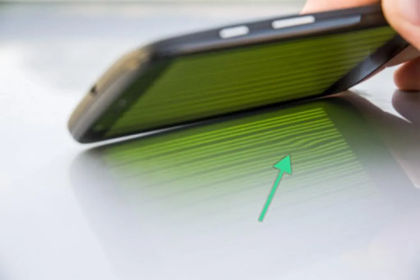 - The smartphone or tablet is held over the surface, so that the pattern reflected in the surface