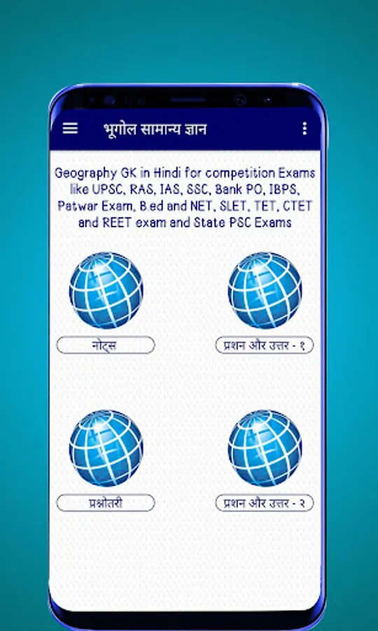 Geography GK in Hindi contains 4000+ Geography Questions in Hindi for various competitions like UPSC, SSC, Bank PO, IBPS, Patwar Exam, B.ed and NET, SLET, TET, CTET and REET exam and State PSC exams.