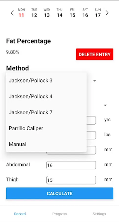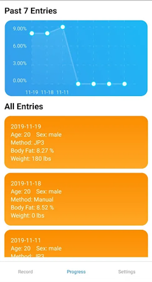 FatTrack keeps track of your calulations and will graph the last 7 entries.
