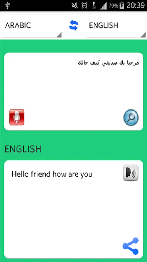 Dictionary English-Arabic translation wonderful application you can translate sentences and Akellmat with ease and communicate with people easily as he can hear the translation of the spokesman of listen to it I hope that you like it and obtain the application Thanks