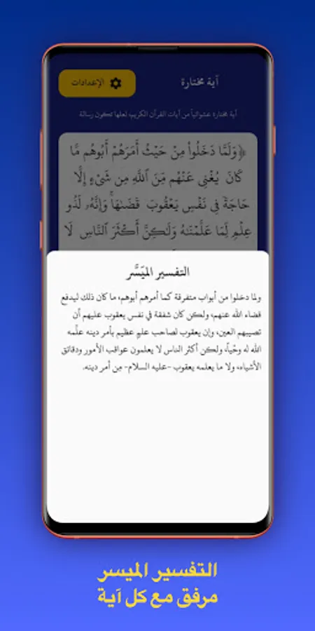 It always reminds you of the Quran; Where it appears to you verses in the form of notices with their interpretation from the book Al-Tafsir Al-Tafsir Al-Maysar.