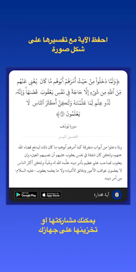 The possibility of memorizing the verse in the form of a picture attached to its interpretation and sharing.