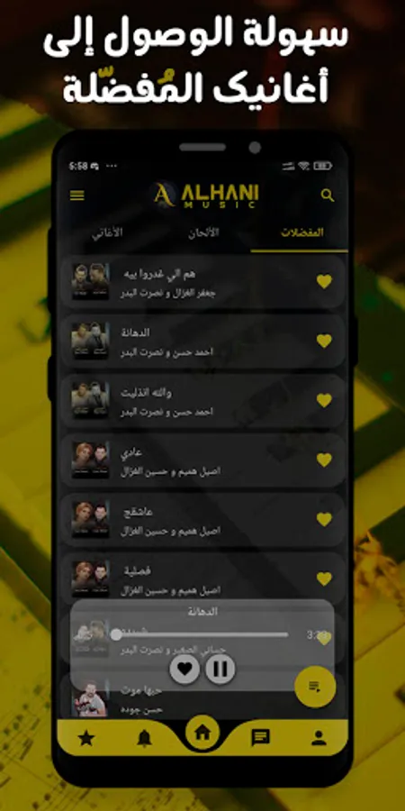 Alhani program contains Iraqi songs and also the possibility of the application singing with the music of your favorite singer where there is the possibility of singing and voice recording with the song and also you can download the song that was recorded and share it with your friends through social networking sites with sharing opinions, comments and evaluation and also you can hear modern and exclusive songs on the Al-Hani application ,