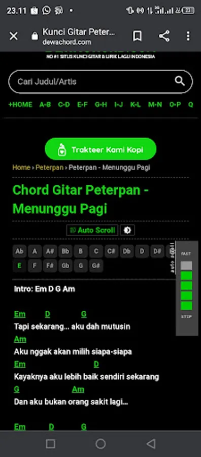 DewaChord is an application that contains a collection of easy chords, basic guitar chords and complete Indonesian and foreign song lyrics!