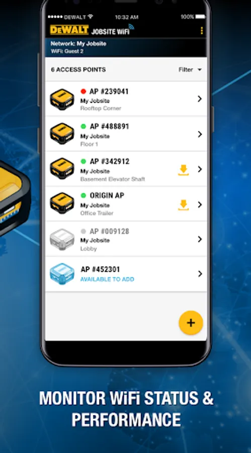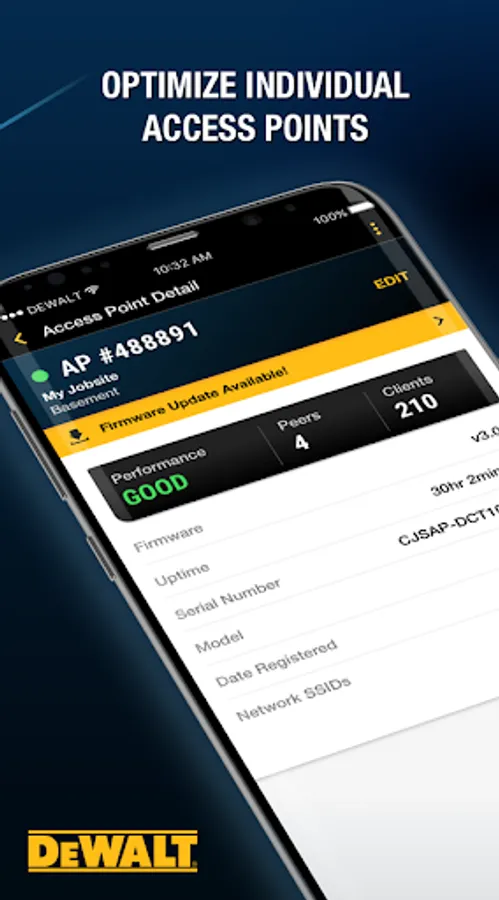 * Manage and optimize individual DEWALT WiFi Access Points