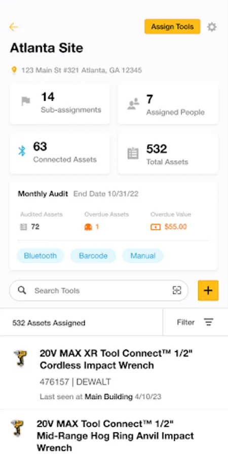 Assign inventory to locations and managers on the DEWALT® Site Manager website for greater visibility and accountability.