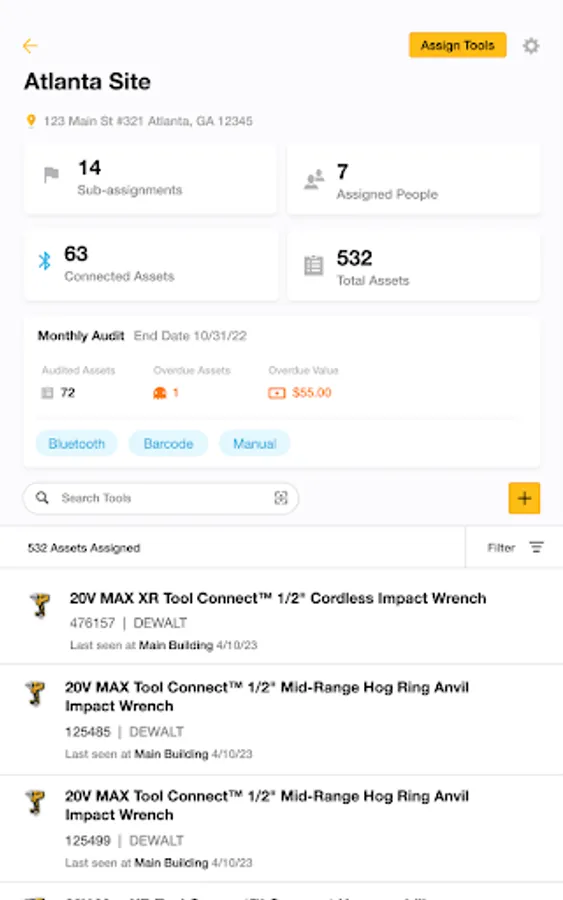 DEWALT® Tool Connect™ Site Manager delivers powerful enterprise features for managing your inventory on the web and with a mobile device, whether you're at the warehouse or on the job site.