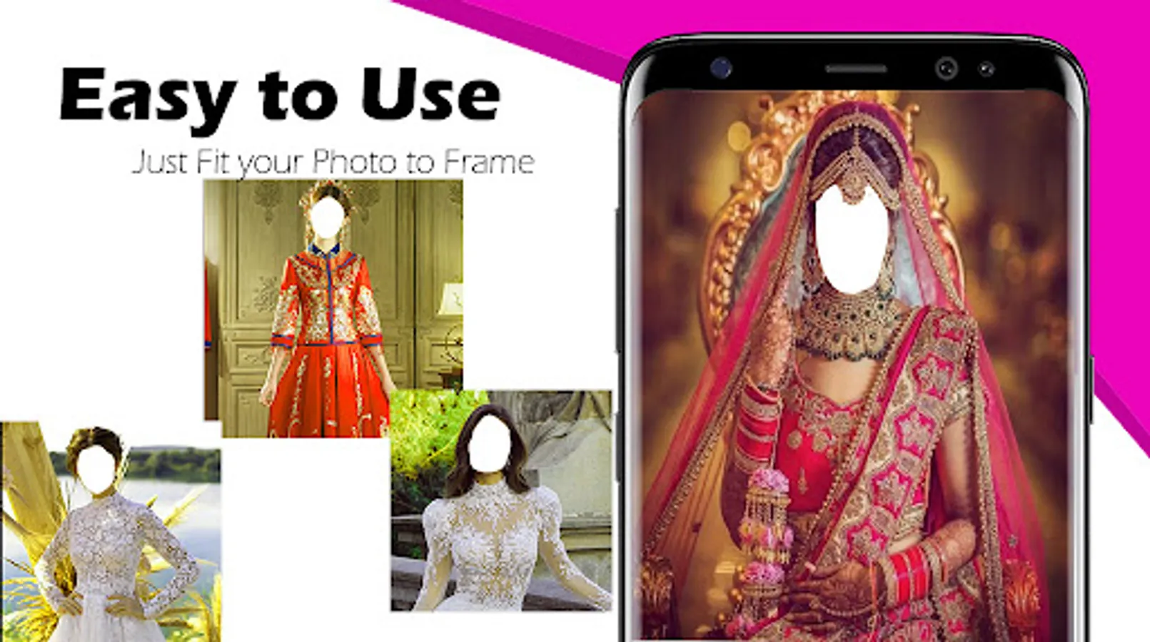 With multiple frames to choose from, it's effortless to decorate your pictures like an Indian wedding suit editor app. It's also the easiest way to change the dress in a photo.