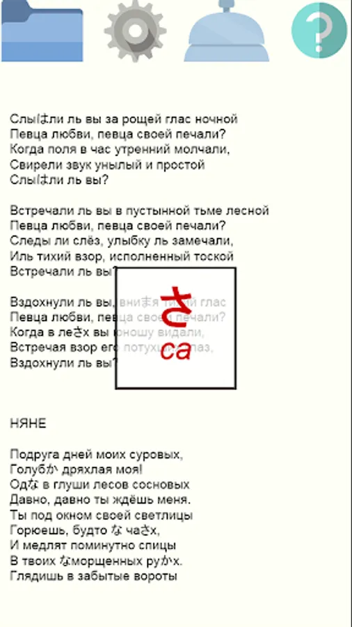 The idea of this application that takes some text and processed in such a way that the syllables in words are replaced by characters Katakana (Katakana) or hiragana (Hiragana).
