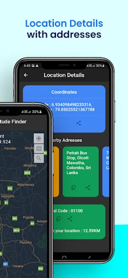 Latitude Longitude Finder is app to find the latitude and longitude coordinates of your current position & any place. Beside that this app can give the nearest available addresses and you can find the postal code & altitude of your position too.