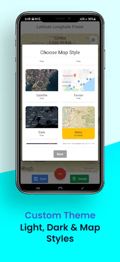 🔵 Add marker on the map and tap on the details to get coordinates & other details of that position.
