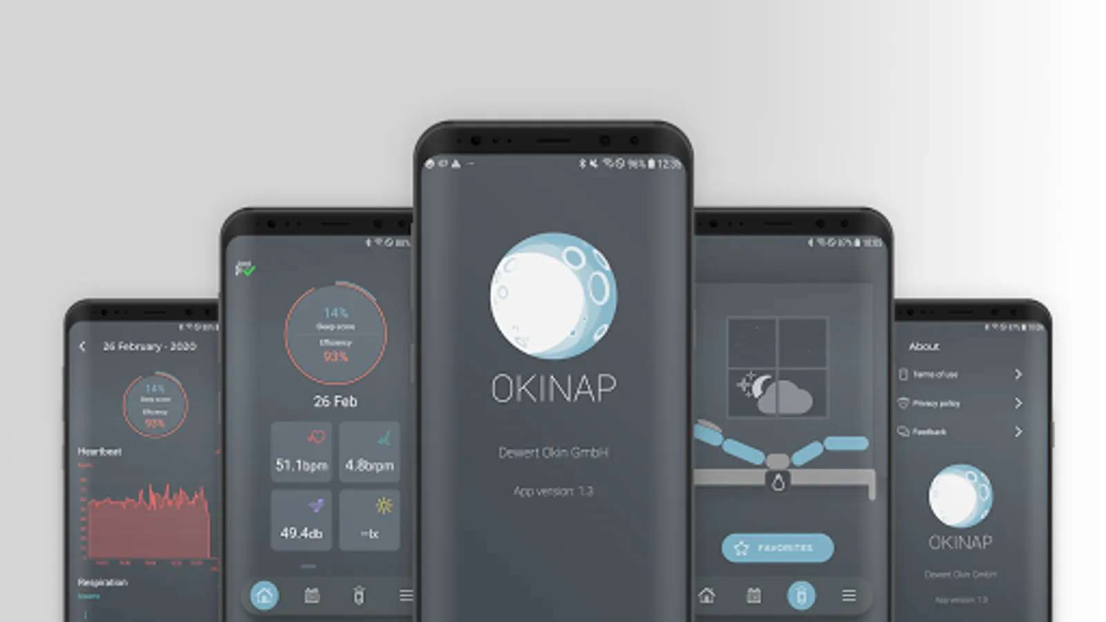 OKINAP is a sleep tracking app which improves the sleeping quality for a fresh start of everyday life. It collects all relevant sleep data and helps to improve the quality of the rest phases. There is a sensor beneath the bed frame, that evaluates bed movement, noise and light environment, temperature, snoring, heart and respiratory rate as well as sleeping phases and cycles. The advanced anti-snoring feature is a very innovative one, which gives you and your surroundings a peaceful and quiet sleeping experience.