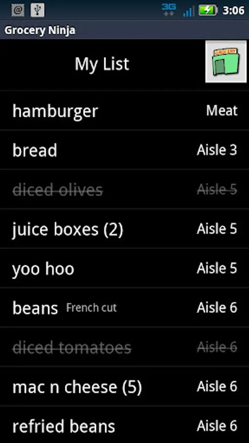 Create your grocery list, and the Grocery Ninja Master will sort your items by location in the store. Shop at more than one store? No problem! You can manage any number of stores, and even track the locations of items from store to store. If you finish shopping at one store and go to another, simply change the active store, and the items will be sorted based on their location in the new store. If you'd prefer to manage separate lists for each store, simply choose the "Group Items by Store" option, and all the stores will appear in your master list, identifying the items you need to buy. As you pick up each item you need, clicking the item in the list will cross it off, so you can see what is left to get.