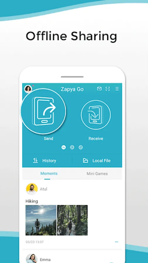 No personal information or other social media account is required to login and interact with your close friends on Zapya Go. You can stay anonymous and be in control of your data!