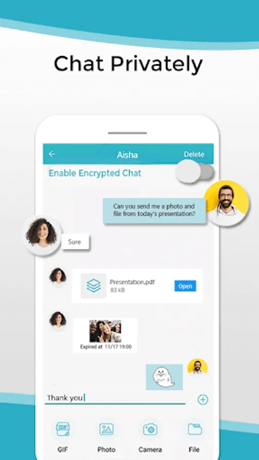 Stay in touch with your close friends without compromising your privacy by using the encrypted chat feature. The chat history is cleared as soon as the receiver has finished reading the message to ensure that there are no screenshots of the conversation.