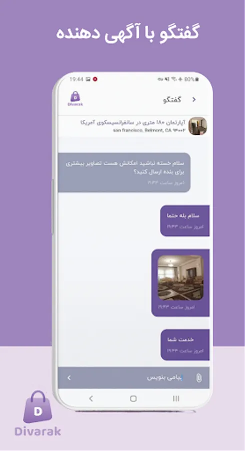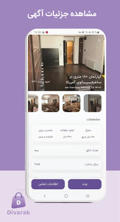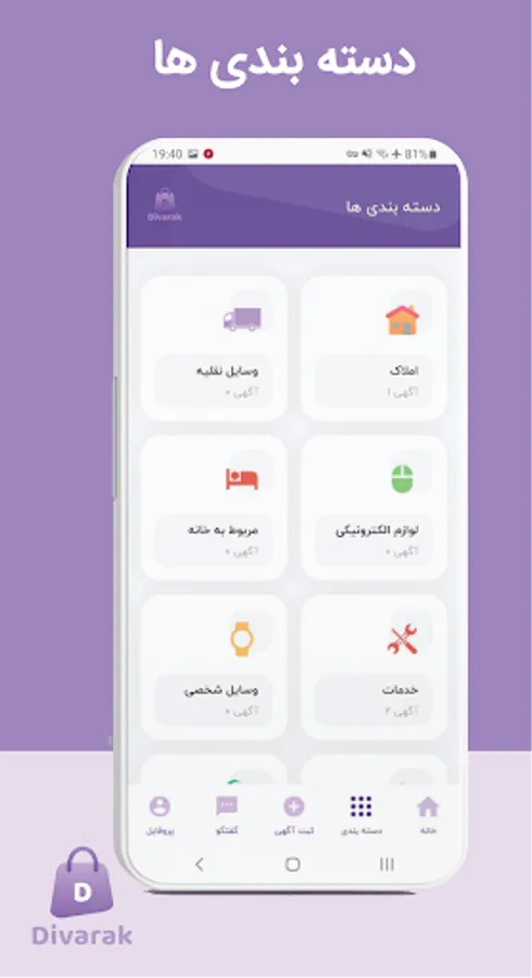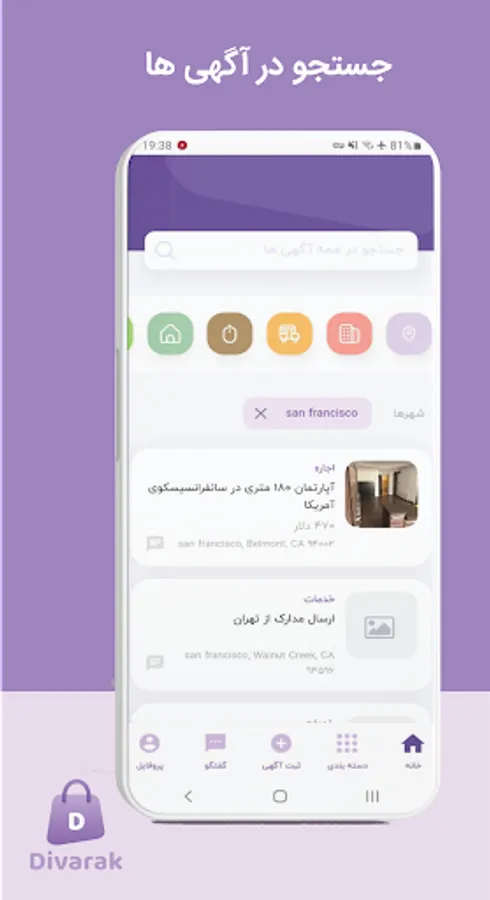 Divarak is an app developed for all types of users, especially Iranian people who live abroad. The main purpose of the app is to provide a platform to connect people to buy and sell their goods and promote their services.