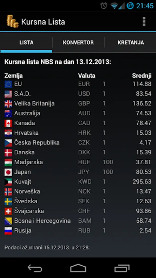- Medium / buying / selling rate can be seen by clicking on the table itself, and loading rate for another day, click on the title above.