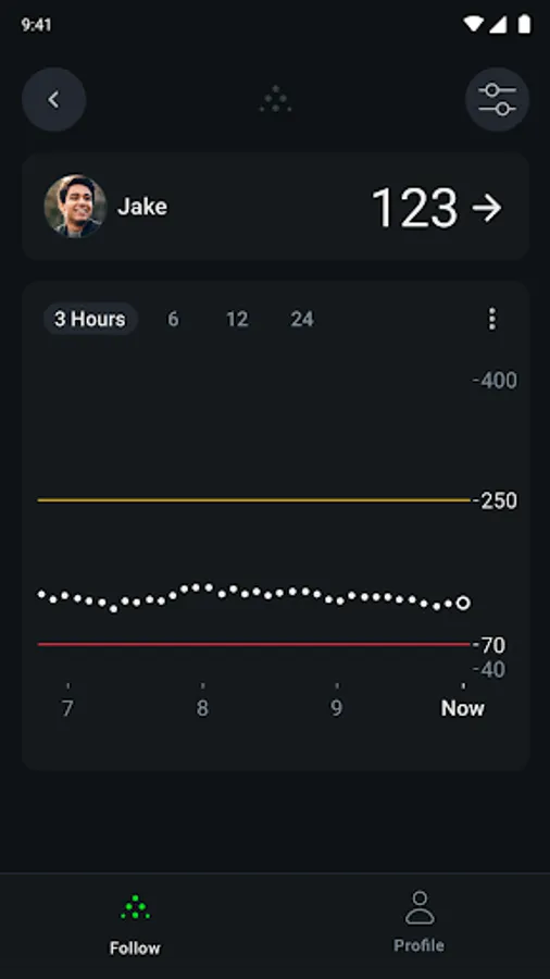 Dexcom Follow works seamlessly with your loved one’s Dexcom CGM, giving you visibility into their glucose data, even when they’re far away. Dexcom Follow allows you to view and follow their glucose levels, trends and data right from the app. Whether your child is in school, your parent lives independently, or your partner is traveling, Dexcom Follow helps you stay connected and informed.